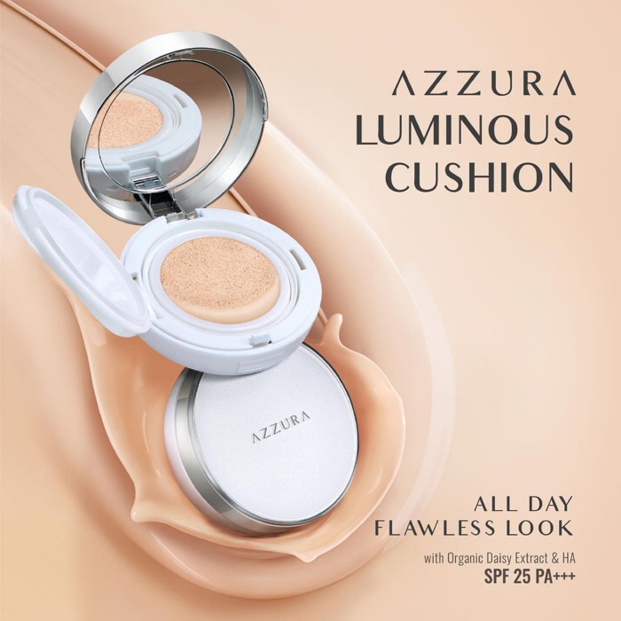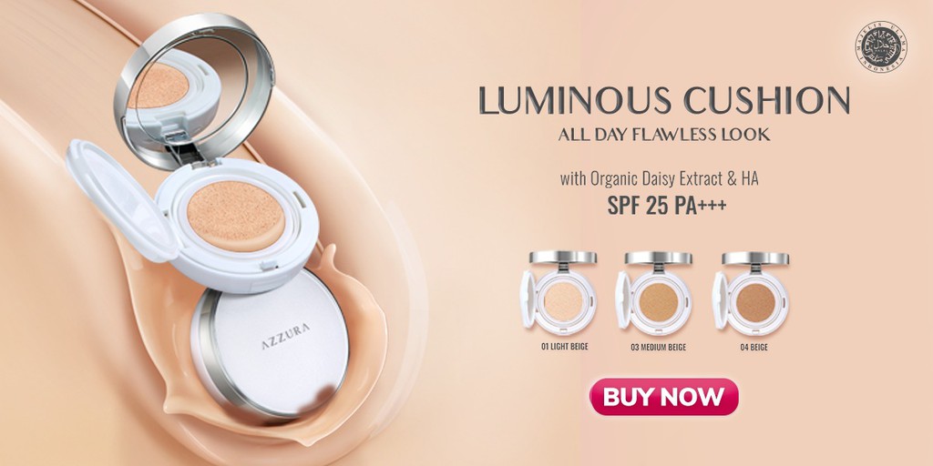 Menciptakan makeup yang memiliki formula ringan dengan hasil akhir sempurna adalah tujuan Azzura mengeluarkan AZZURA Luminous Cushion. Apapun yang kamu butuhkan untuk wajah lebih bercahaya, AZZURA Luminous Cushion bisa mewujudkannya! Dengan medium-to-high coverage, cushion ini yang tidak akan menghasilkan makeup yang cakey. Perpaduan sempurna antara high coverage dan tekstur ringan serta perlindungan SPF 25 PA+++, cushion ini mampu menyamarkan tampilan noda hitam, bintik hitam hingga bekas jerawat.