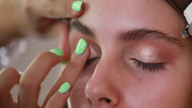 Tidak ada salahnya juga untuk menambahkan eyeshadow agar mata terlihat semakin segar. Pilih eyeshadow berwarna hangat seperti cokelat, peach, atau pink tanpa shimmer. Eyeshadow berbentuk cair atau liquid eyeshadow dengan warna matte lebih mudah dibaurkan dan hasilnya lebih natural dibandingkan dibandingkan yang berbentuk compact. Pulaskan eyeshadow menggunakan jari manis di bagian kelopak mata secara merata.